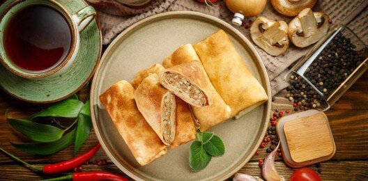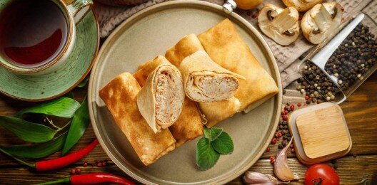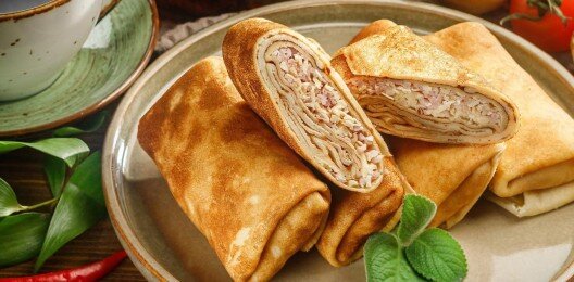 БЛИНЧИКИ С ВЕТЧИНОЙ И СЫРОМ